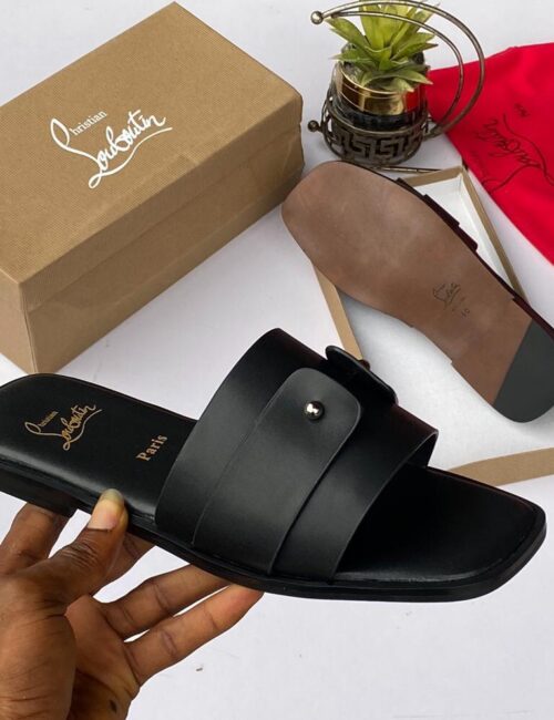 Christian Louboutin Chambelimule Men’s Mules. Crafted in premium leather with a sleek, backless design, they blend refined comfort with signature red sole flair. Perfect for polished evenings or upscale casual wear—luxury footwear that makes a statement with every step.