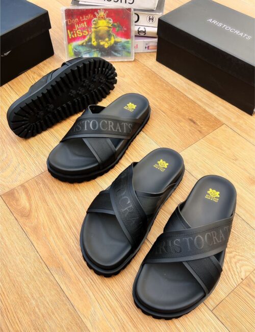 Step into comfort and style with The Aristocrats Crest Cross-Strap Slide. Featuring bold ARISTOCRATS branding on its black cross-over straps and a supportive, chunky lug sole, these slides offer a blend of luxury and casual sophistication.