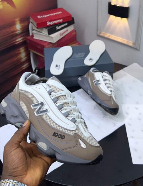 The iconic New Balance 1000 returns with a chunky, athletic silhouette in a sophisticated brown, grey, and white colorway. Features a breathable mesh base, synthetic overlays, and a durable, sculpted sole for all-day comfort and stability.