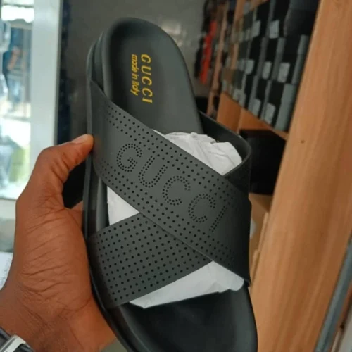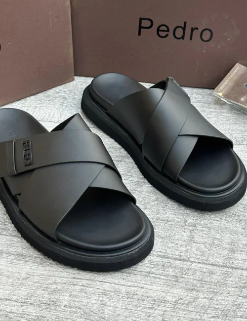 Step into bold comfort with these black cross-strap designer slides. Crafted for those who value style and everyday ease.