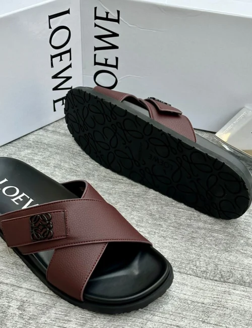 Step into effortless luxury with these Loewe olive green cross-strap leather slides. Designed for comfort and style, they bring a bold yet refined touch to your everyday look.