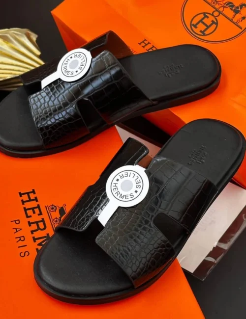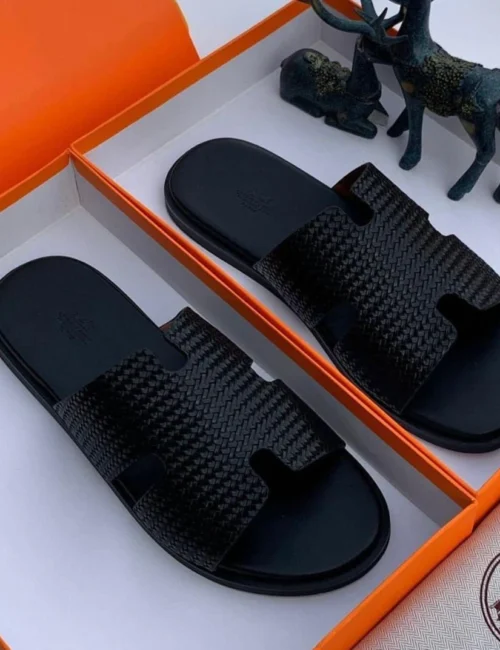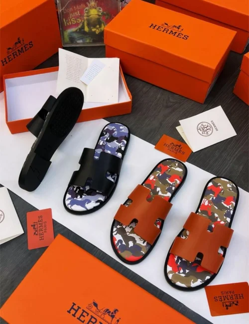 Step into luxury with the iconic Hermès Oran sandals, reimagined in bold camouflage designs. Crafted for style and comfort, these statement slides bring effortless sophistication to every step.