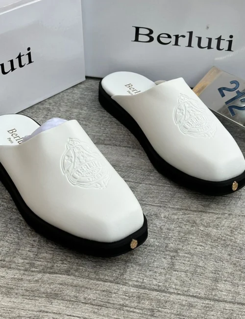 Make a bold statement with these premium white embossed mule slides. Crafted for those who appreciate luxury and standout style.
