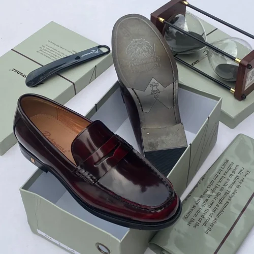 Step into prestige with these gloss burgundy loafers made for bold, confident men. Their sleek shine and refined design bring effortless luxury to your wardrobe.