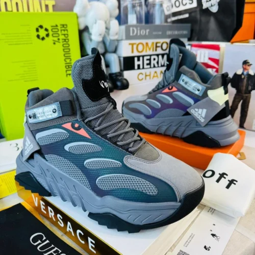 Step out in confidence with these bold Adidas grey high-top trail sneakers. Designed for comfort and durability, they deliver the perfect mix of sporty style and everyday performance.