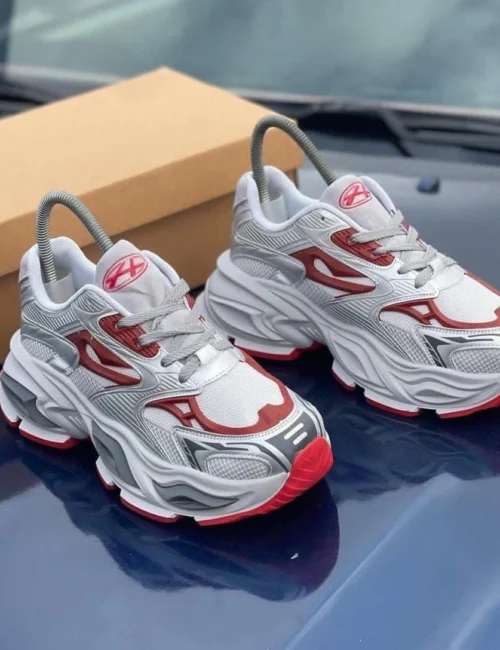 Command the streets with these high-end B-Logo chunky sneakers, designed for the modern fashion enthusiast who values bold aesthetics. The clean white finish paired with striking black accents creates a fascinating, luxury-sport silhouette