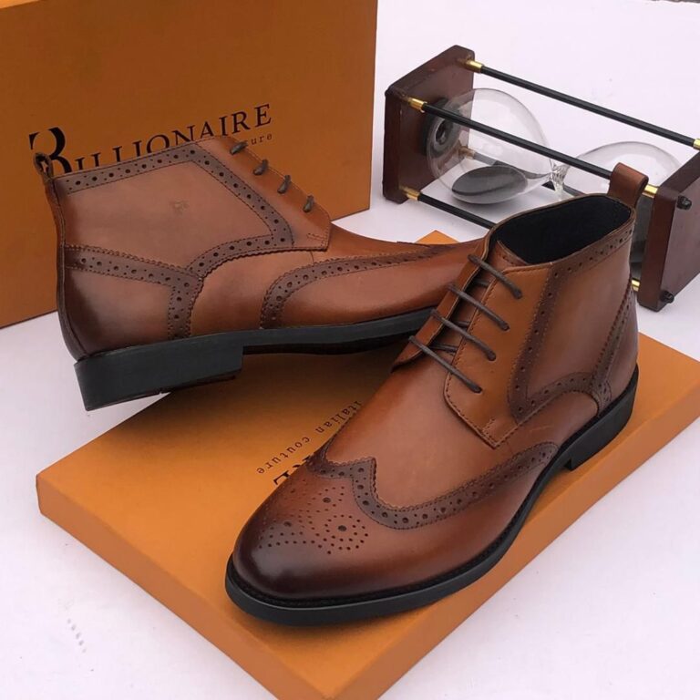 A timeless blend of tradition and modernity. Handcrafted in rich cognac leather, this ankle boot features intricate Italian wingtip broguing and a sleek profile, making it the definitive choice for sophisticated everyday and formal wear.