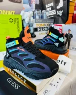 Command the streets with these high-end B-Logo chunky sneakers, designed for the modern fashion enthusiast who values bold aesthetics. The clean white finish paired with striking black accents creates a fascinating, luxury-sport silhouette