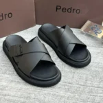 Upgrade your essentials with these sleek black slide sandals that never go out of style. The minimalist cross-strap design delivers a clean and confident look. Perfect for daily wear, casual outings, or travel, they match any outfit effortlessly. Built with a comfortable sole and durable finish for long-lasting use. Step into simple luxury and modern confidence every day.