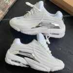 Drawing inspiration from 1990s turf trainers, this model blends athletic heritage with modern luxury aesthetics. The triple-white finish makes it a versatile staple for any wardrobe, while the chrome hardware ensures you stand out. Breathable mesh underlays and a padded collar provide a snug, supportive fit for all-day movement. The custom tread pattern on the outsole offers excellent traction and durability. Whether you’re a sneaker collector or a casual wearer, this pair delivers on both hype and functionality. It is a bold statement piece that embodies the “Certified Lover Boy” aesthetic.