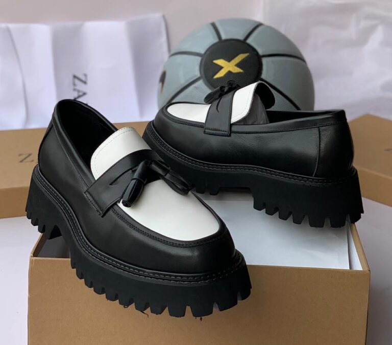 The Bold Loafer: Elevate your look with these chunky platform loafers. The classic black and white two-tone design meets a contemporary lug sole for a comfortable and striking statement piece that merges heritage style with modern streetwear edge.